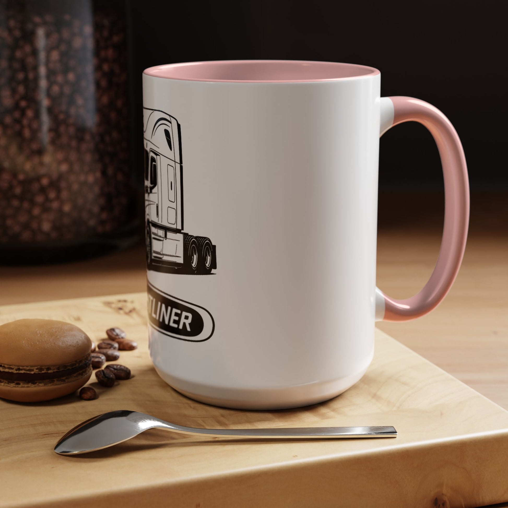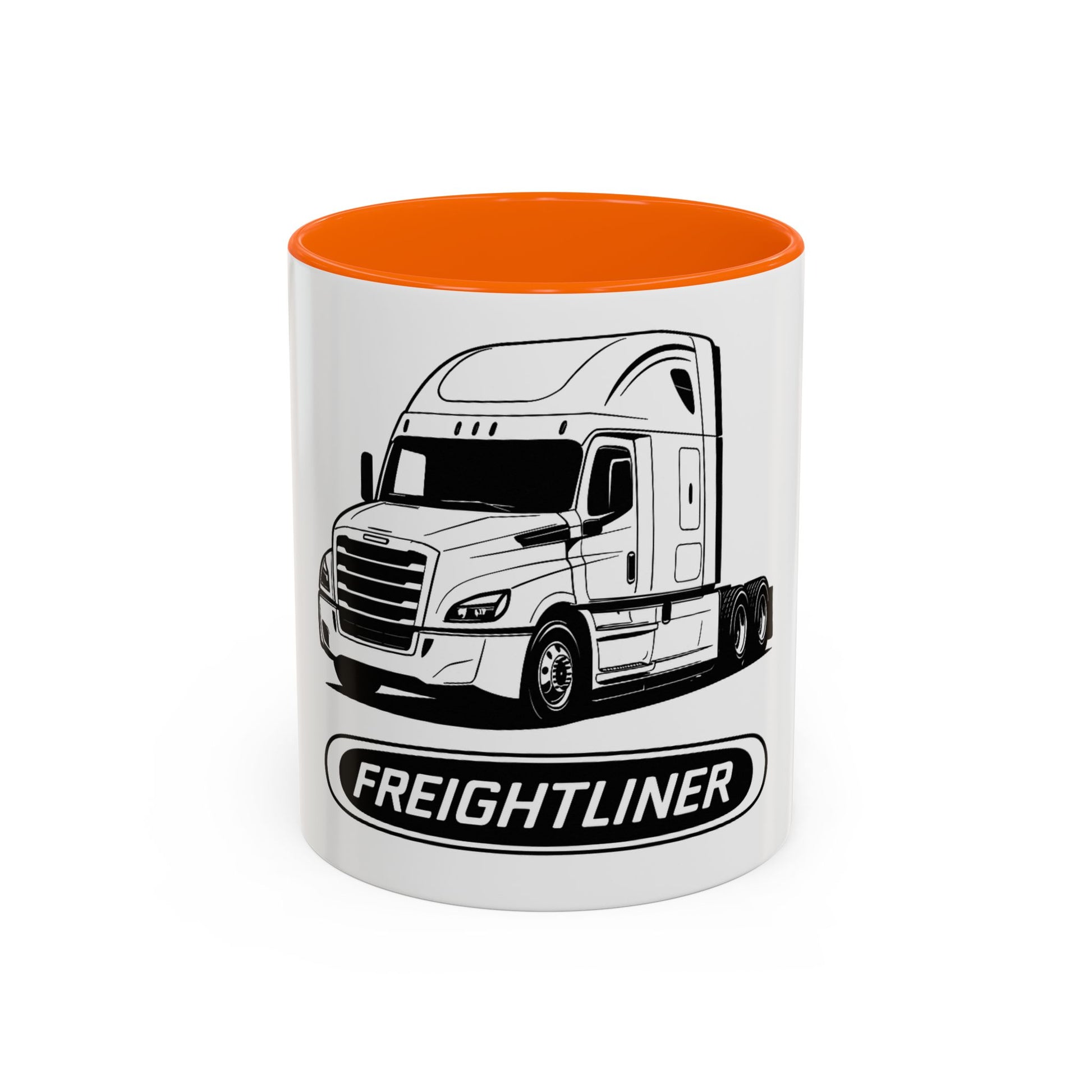 This sturdy ceramic mug carries the calm confidence of long-haul roads and early morning miles. A clean, monochrome Freightliner illustration wraps the side, balanced by a bold logo beneath — simple, unmistakable, and quietly proud. The colored interior and handle add a flash of personality that highlights the truck artwork. It feels right in the hands of someone who starts their day before dawn, sips slowly between routes, and appreciates gear that’s durable and straightforward. Use it on the cab dashboard, at the kitchen table, or beside a toolbox — it settles into a trucker’s rhythm without fuss.