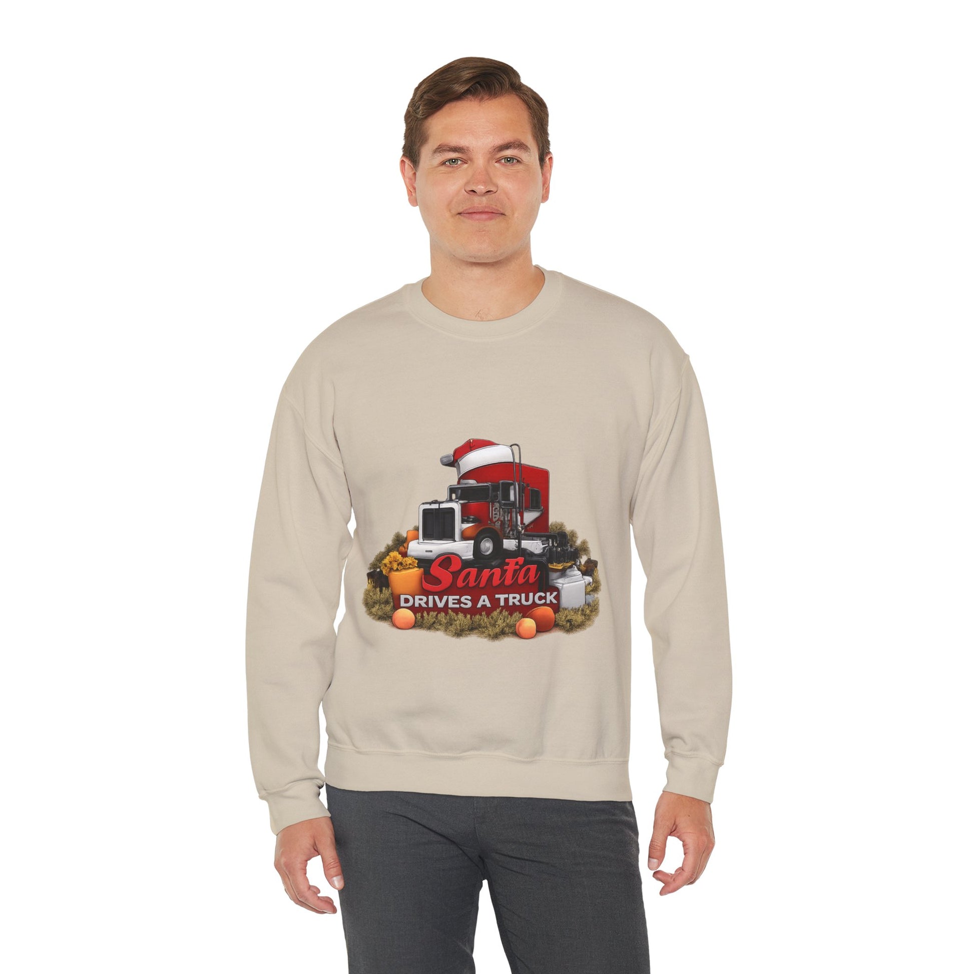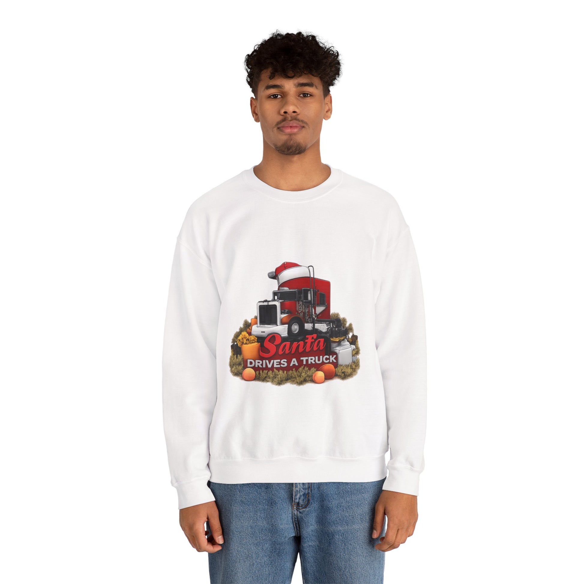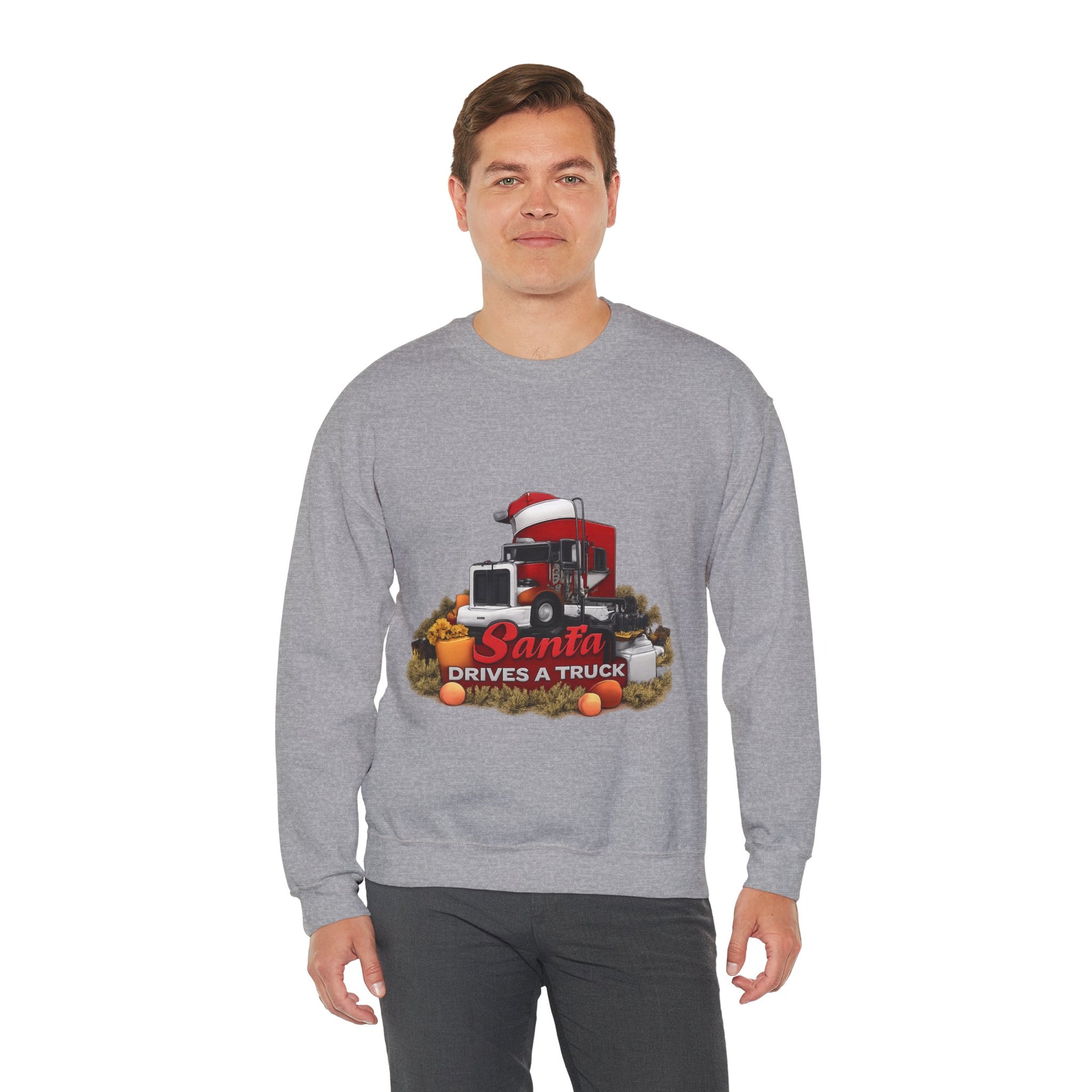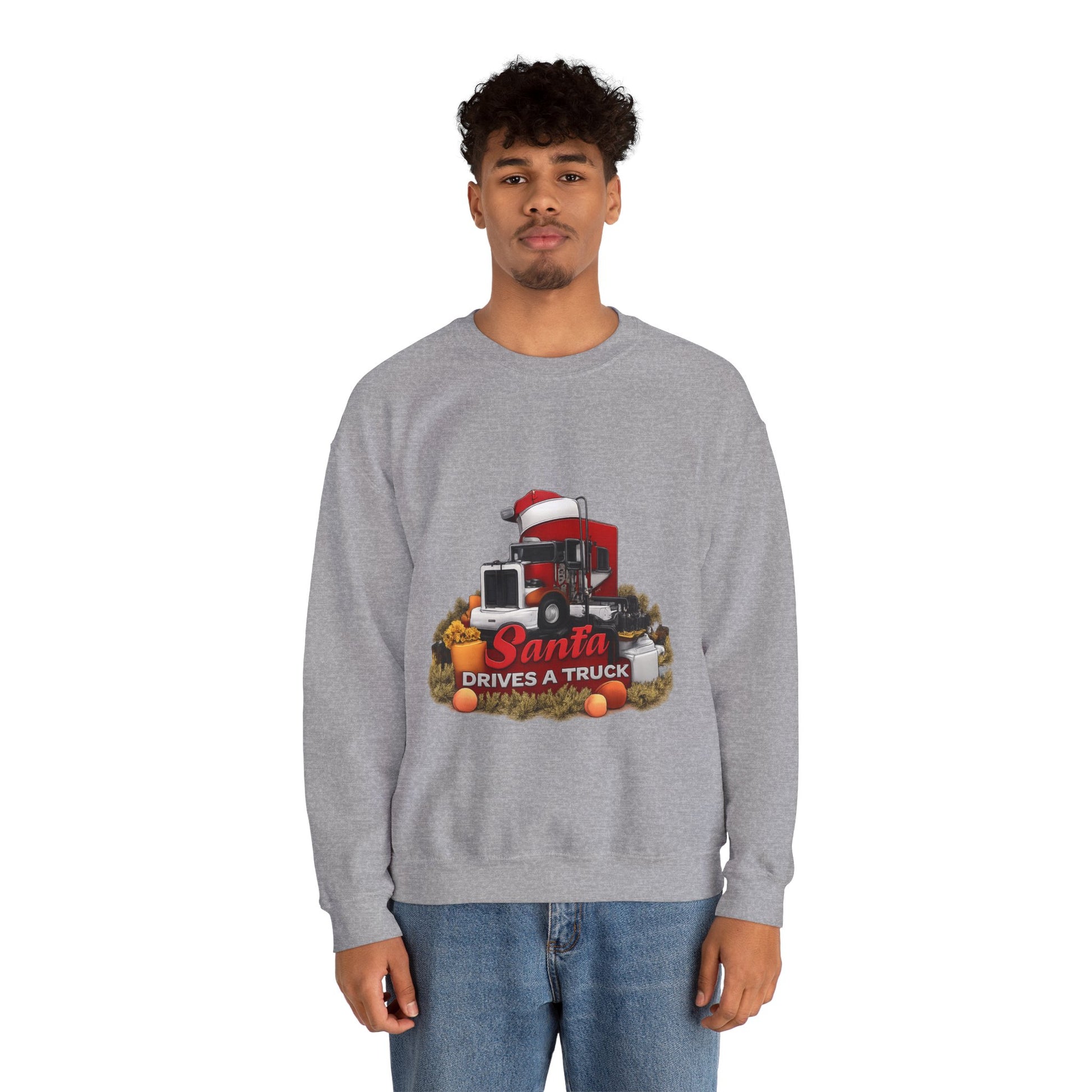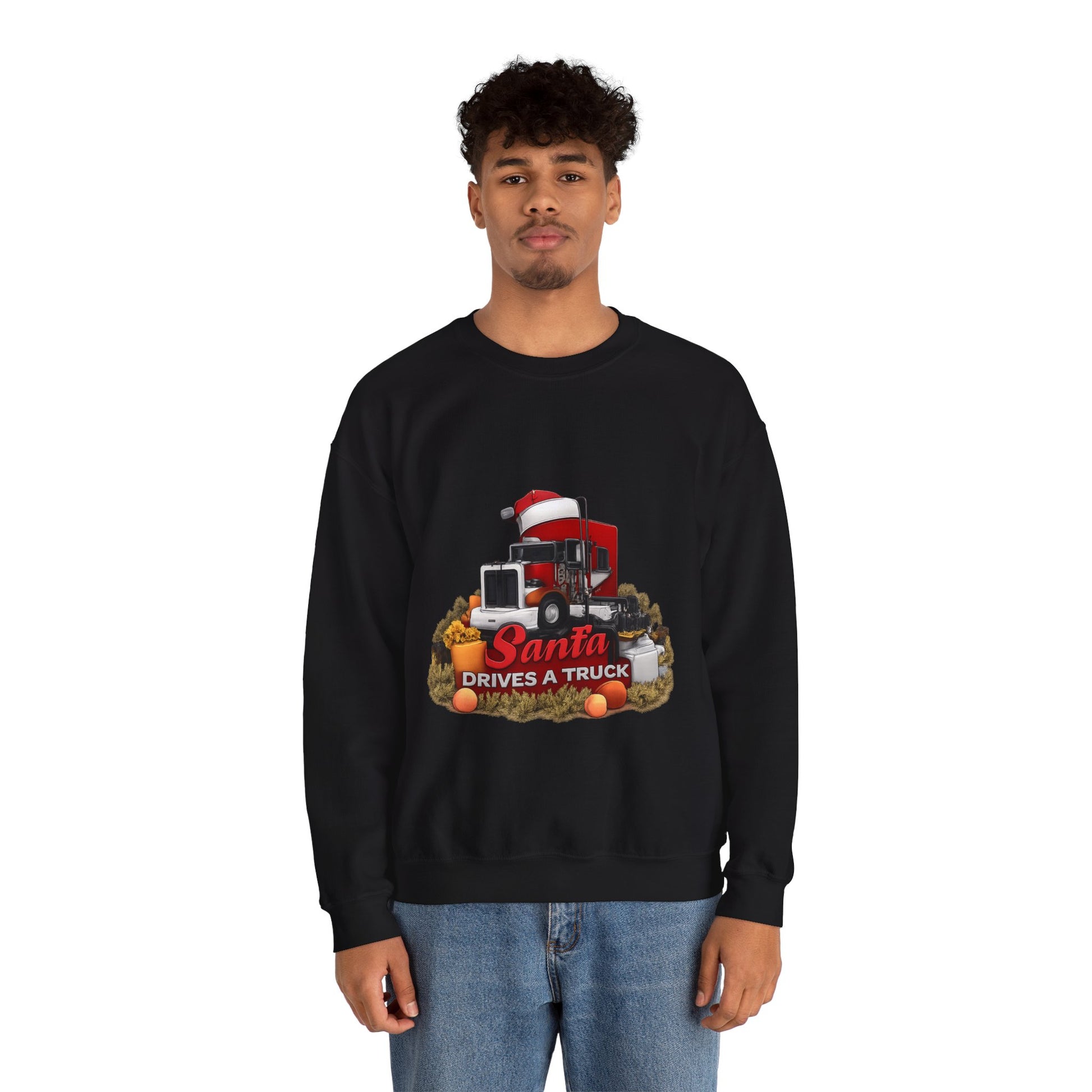 Santa Drives a Truck Sweatshirt — Christmas Trucking Holiday Crewneck